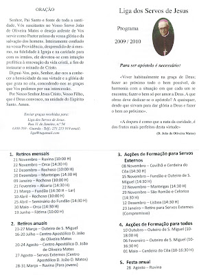 No dia 6 de Fevereiro, ficaremos a saber quem se decidiu por passo tão importante, para a Igreja Universal e Diocesana, para a Liga dos Servos de Jesus, e para cada um dos que optarem pelo "salário" de cem por um e a Vida Eterna. Verão que não vão arrepender-se.