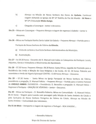 PROGRAMA DETALHADO DA VISITA A ANGOLA!